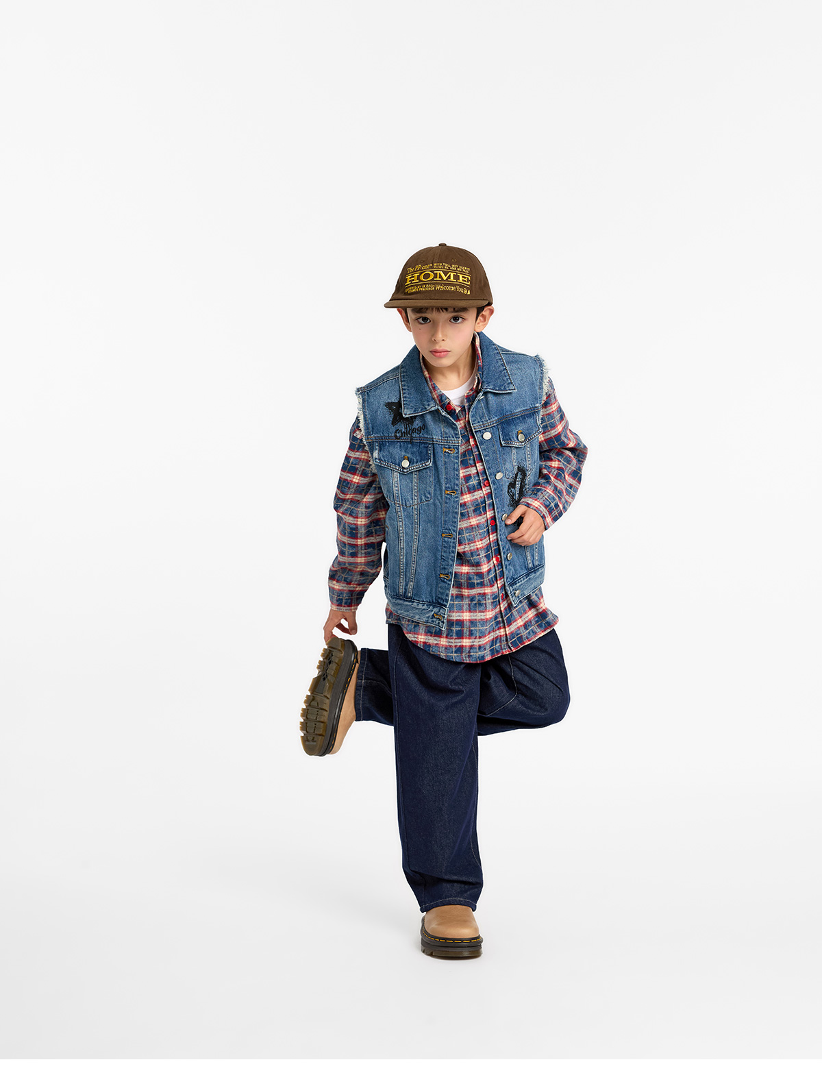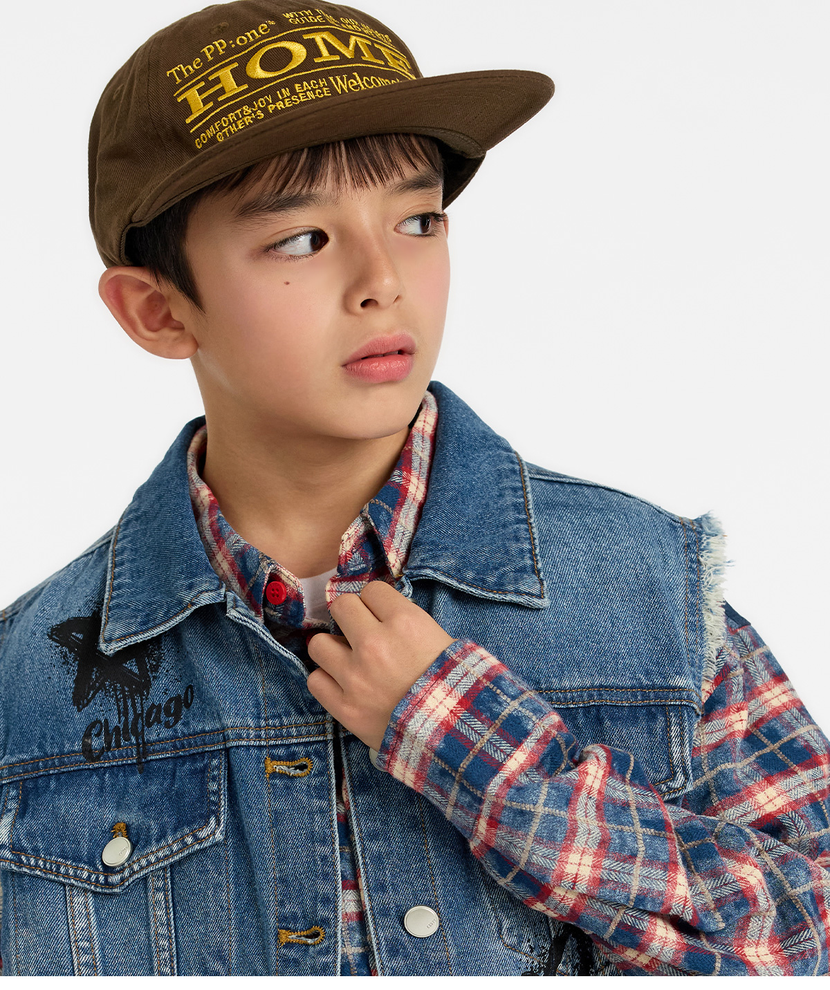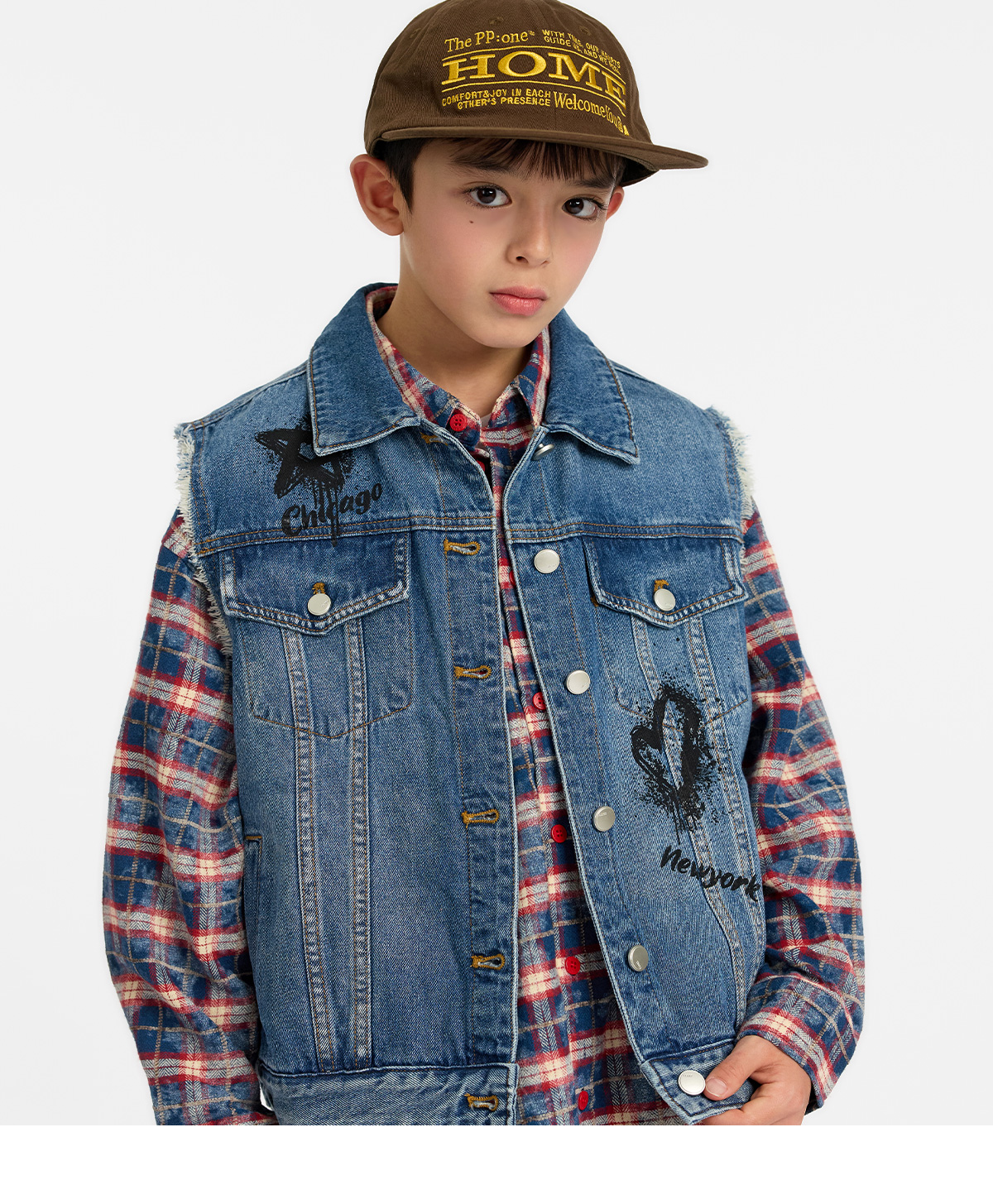 빈티지한 무드가 살아 있는 중청 컬러 데님 베스트예요.