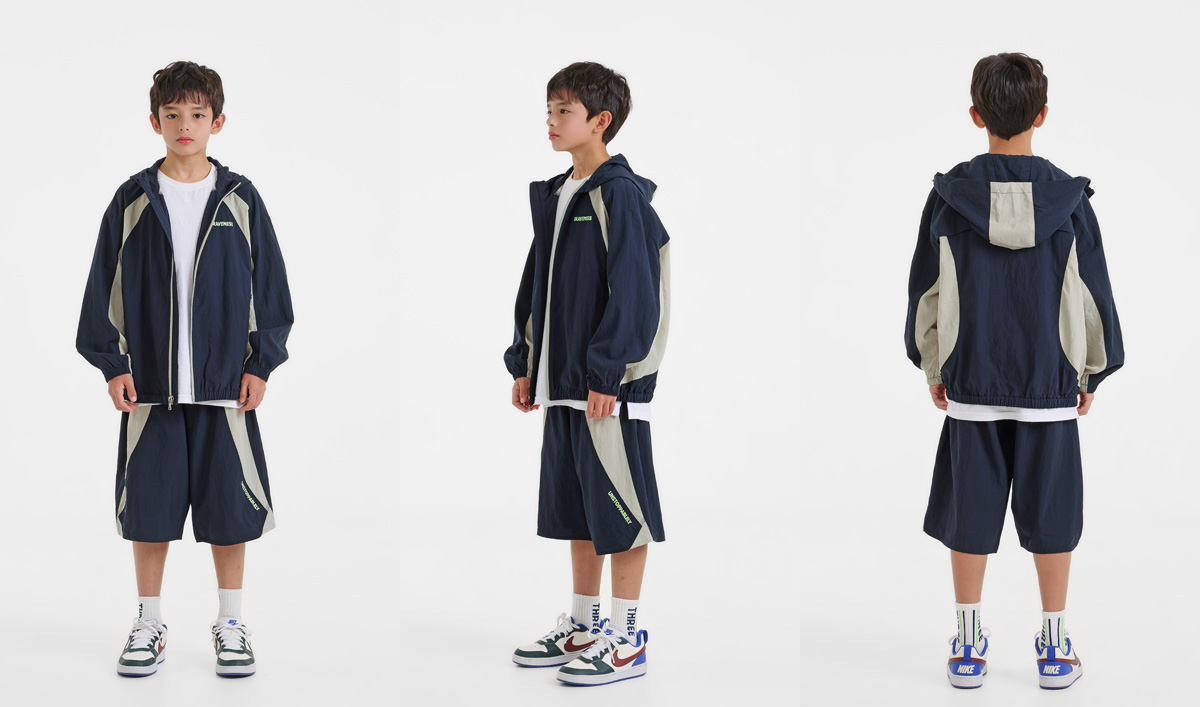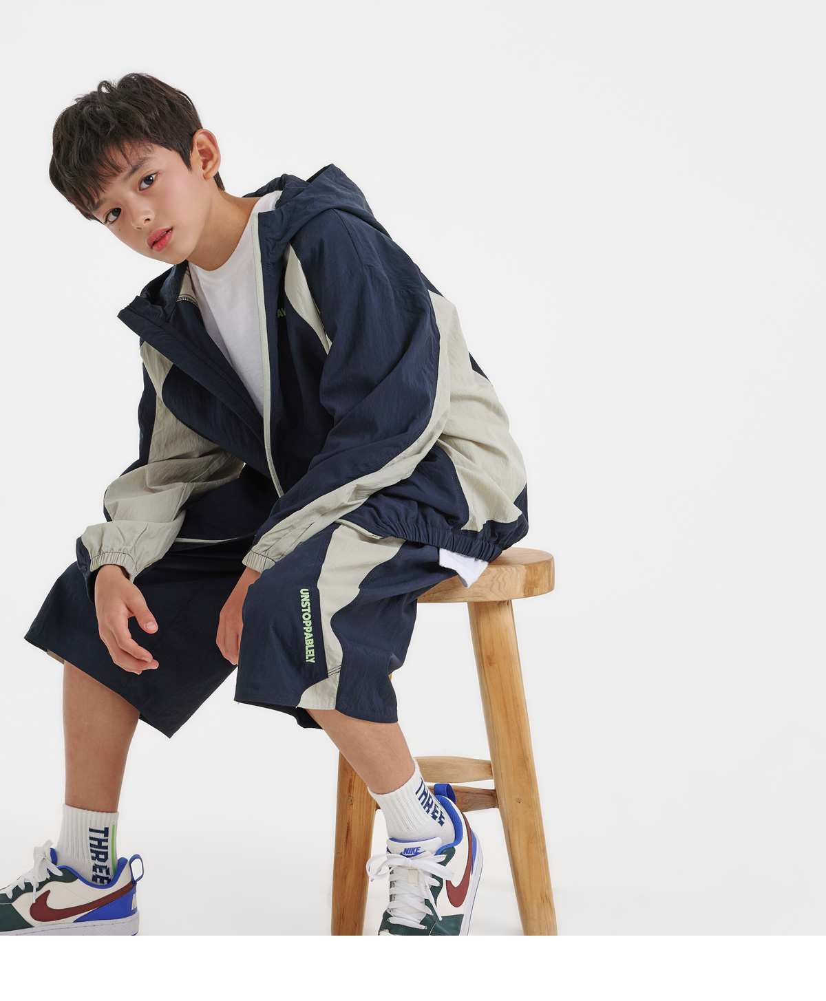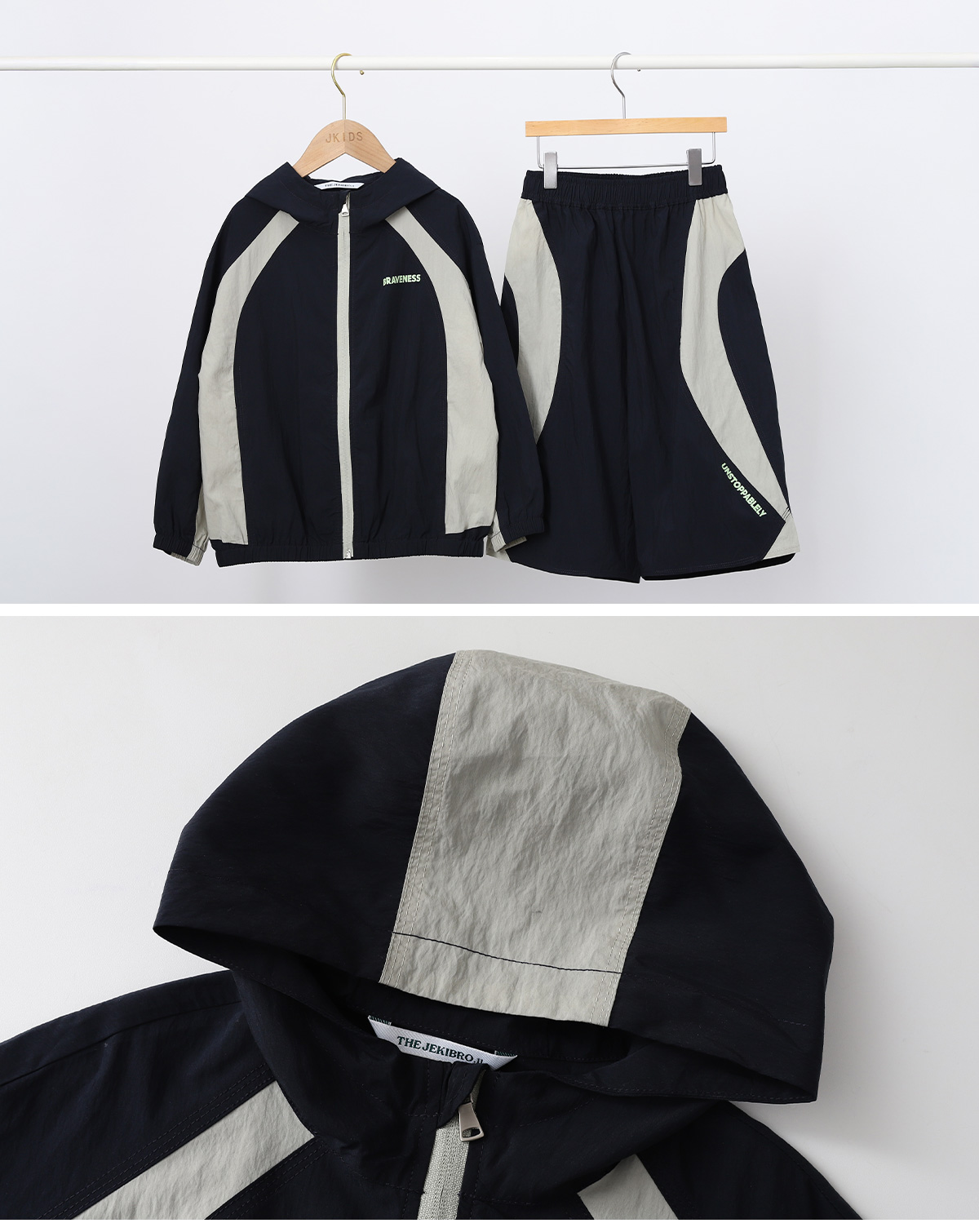 가볍게 입기 좋은 우븐 집업 상하 세트예요.
