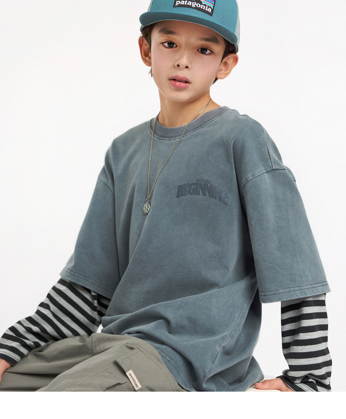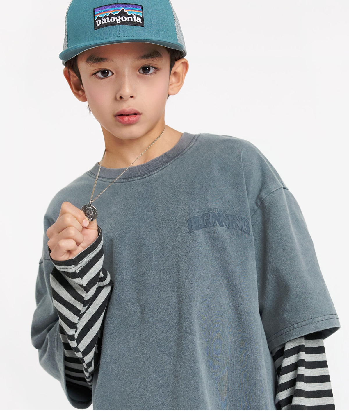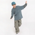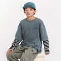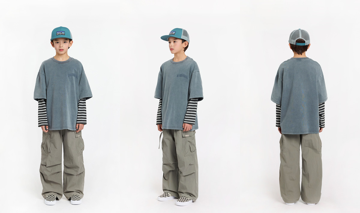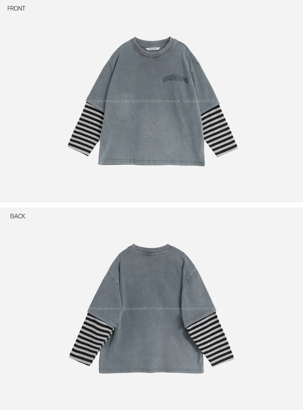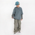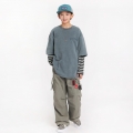 빈티지한 워싱 컬러감에 스트라이프 소매가 돋보이는 레이어드 티셔츠예요